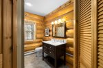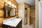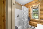 This cabin offers two private bedrooms. One room offers a King Size bed and the second bedroom offers a Queen Size bed. There is one private full size bathroom with a stackable washer and dryer set to do any of your washing needs.