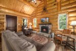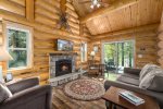 This newly built log cabin offers a cozy place to call home while visiting Glacier. Walk into this beautiful one level cabin and get immediate views of Glacier Park Mountains and the cascading river below. Enjoy the comfortable seating living area with river rock gas fireplace, apple tv or fast wifi for all your researching online needs.