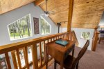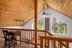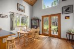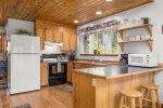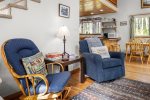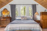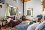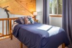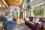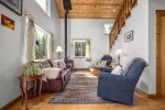 Step inside our main entrance to an open floor plan living with hardwood floors. The main level offers a fully stocked kitchen with bar seating for 3 or enjoy the dining area for family meals. The cozy living room gives you the experience of chalet living with tall ceilings and windows. There is one private bedroom on the main floor with a queen bed. The full size private bathroom has an original clawfoot tub to soak your tired hiking muscles after a long day on the trails. Upstairs in the large open loft area, you will find a king size bed with one additional twin bed. Enjoy the evening hours with games and puzzles or cozy up to watch a movie on the smart tv. Wifi is available on the property for all your work or individual needs.