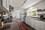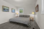 Retiring for the evening, located at the north end of the house are three bedrooms and one full size bathroom. The master bedroom offers a king-size bed, the second bedroom has a queen size bed, and the third bedroom offers two twin beds. The blue bird house sleeps 6 guests comfortably.