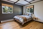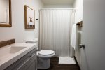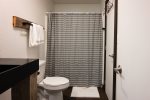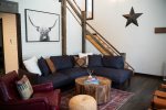 Enter through the front door to an open floor plan layout that includes the dining, kitchen and living room space greets you. On the main level you will find the master bedroom suite with king-size bed and a full-size bathroom. This bathroom also functions as the main floor bathroom for your group needs. The additional guest bedrooms, each have one queen bed, are located upstairs with a private full-size bathroom between each private bedroom.